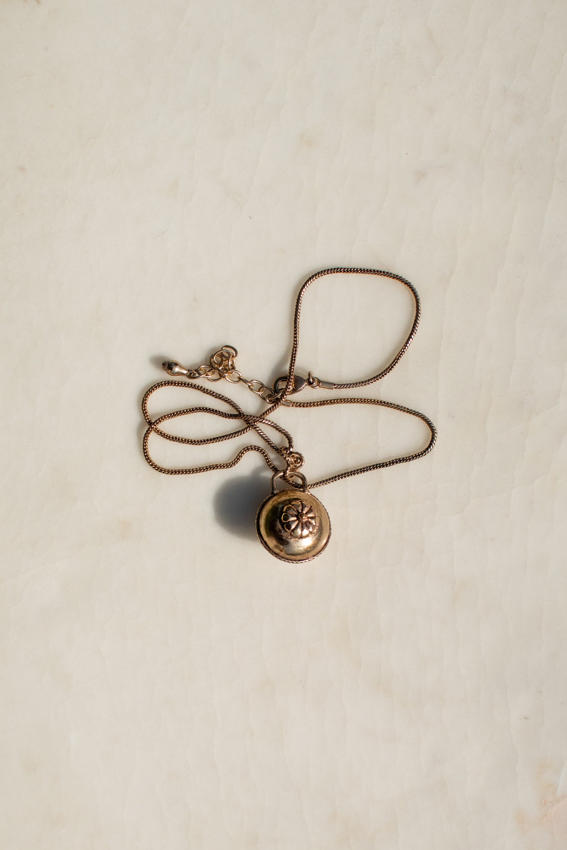 Rooted in tradition yet crafted for the modern muse, the Ancient Puffy Pendant is a bold brass creation inspired by ancient Indian dye-making techniques. Handcrafted with a distinctive puffed silhouette, it evokes a sense of old-world charm reimagined through an ethno-contemporary lens. Suspended from a refined chain with an adjustable link and finished with a motif detail, this piece brings depth, culture, and character to any ensemble.